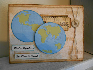 I had to join in on World Card Making Day, and make a card to post today. I've had these Quickutz dies of the globe for some time, and have never used them. I thought today was a perfect time to use them! The background map stamp is from The Artistic Stamper, that I won from Jennie's blog this summer. Fits perfect with this theme. The ticket style stamp is an older Stampin Up one, and the sentiment is computer generated. I used Antique Linen, and the new Gathered Twigs distress inks, as well as my fav, Broken China. I stamped the map again on this inside, and put some Basic Grey paper for journaling on instead of a sentiment. Hope you get some time to create today!